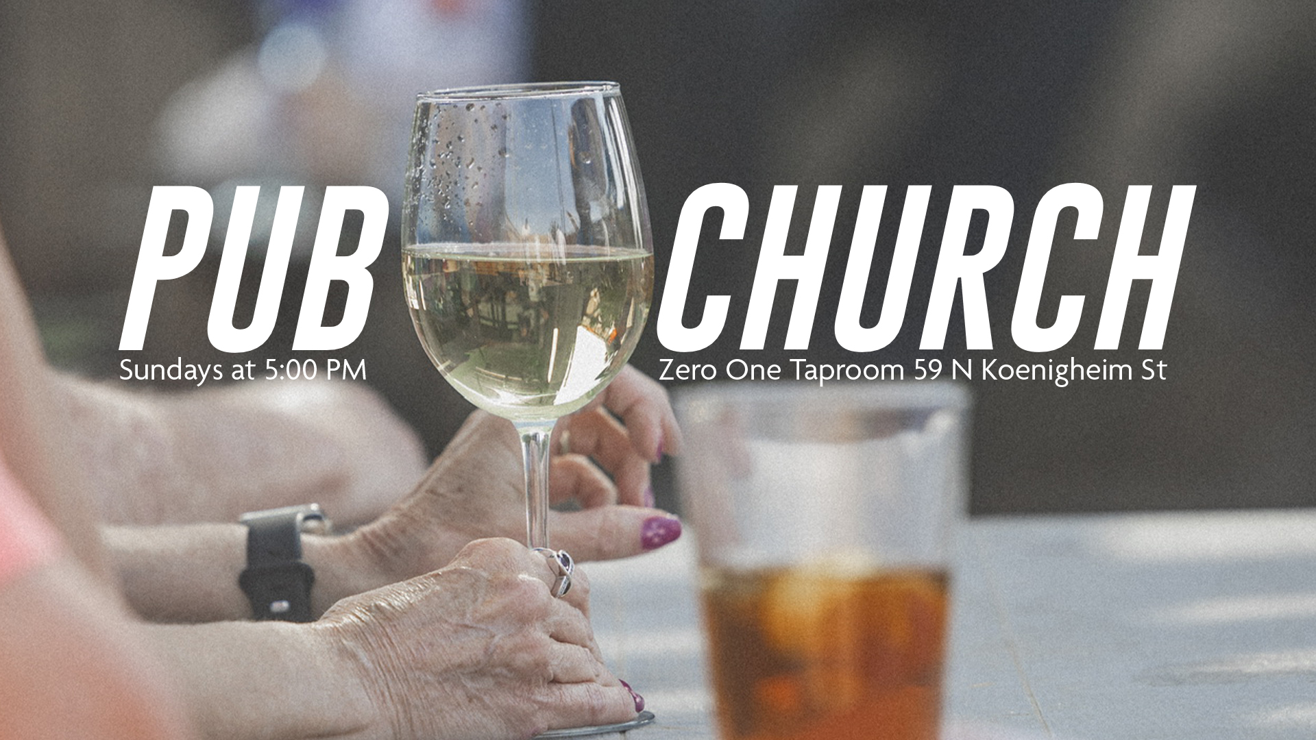 Join us every Sunday evening at Zero One Taproom. Things get started at 5:00 PM with music and conversation, worship begins at 5:30 PM, and we linger in community until 7:00.